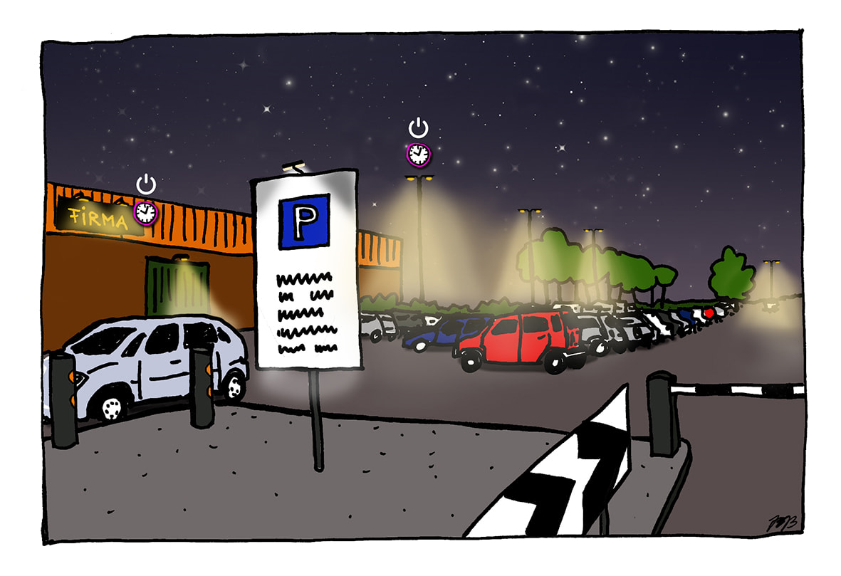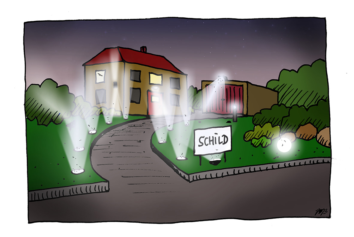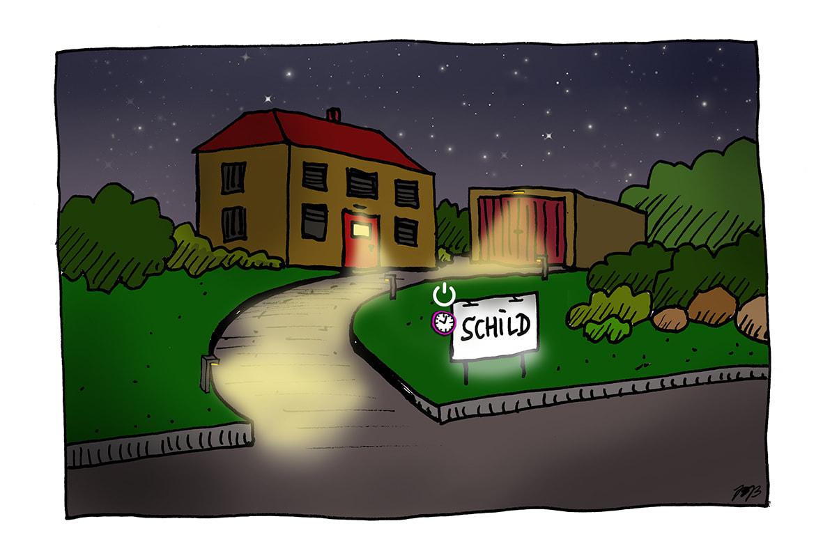 • Die Beleuchtungsdauer sollte durch Schalter, Zeitschaltuhren oder Bewegungsmelder auf kurze Beleuchtungszeiten eingeschränkt und damit unnütze Energieverschwendung und Lichtverschmutzung vermieden werden. Bewegungsmelder sollten unbedingt so montiert werden, dass sie nur ansprechen, wenn tatsächlich Licht benötigt wird.