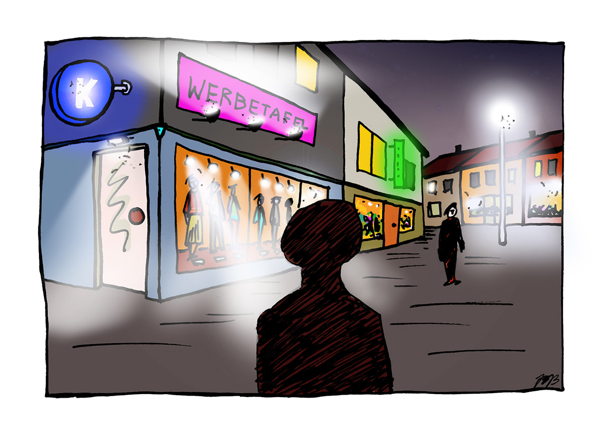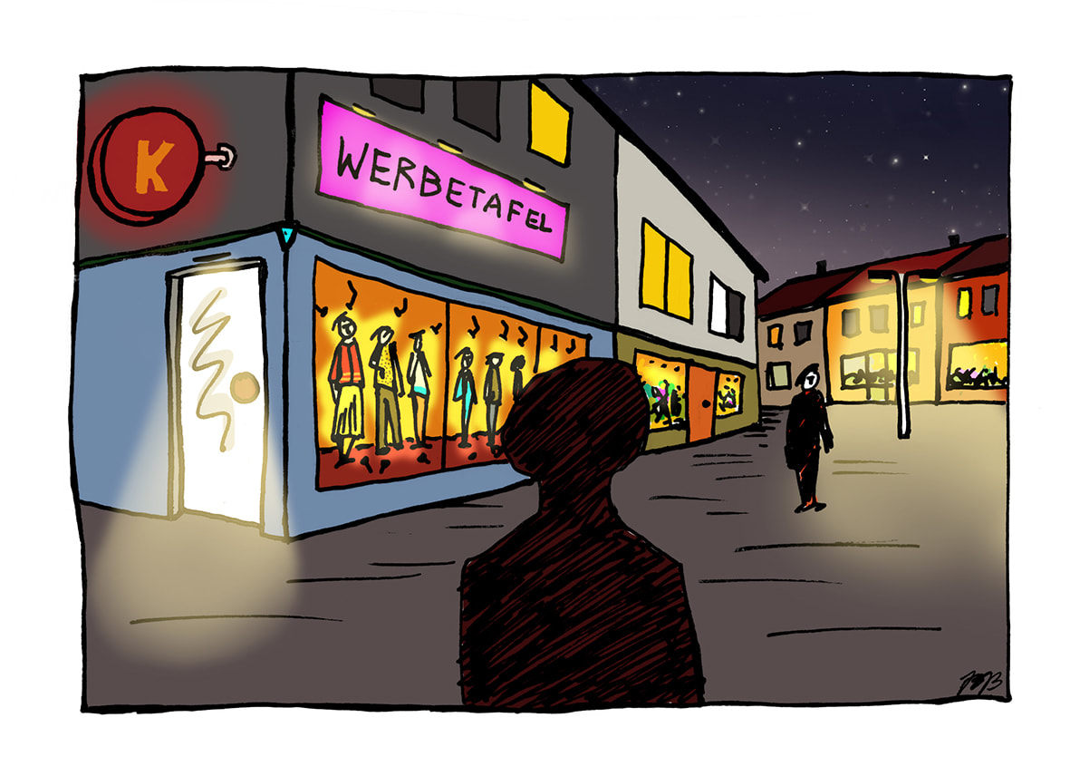 Zu hohe Leuchtdichten in Schaufenstern (z.B. Lichtwände bzw. Displays) sollten vermieden werden, da diese indirekt zur Himmelsaufhellung beitragen und den Sehkomfort im öffentlichen Raum einschränken. Licht soll auf auszustellende Objekte und Waren ausgerichtet sein und eine Abstrahlung in den Stadt-/Straßenraum vermieden werden. Der Grenzwert liegt bei einer mittleren Beleuchtungsstärke von max. 40 Lux – auf der Fläche 1,0 m vor und über die gesamte Länge der Schaufensterfläche, gemessen auf dem Boden.